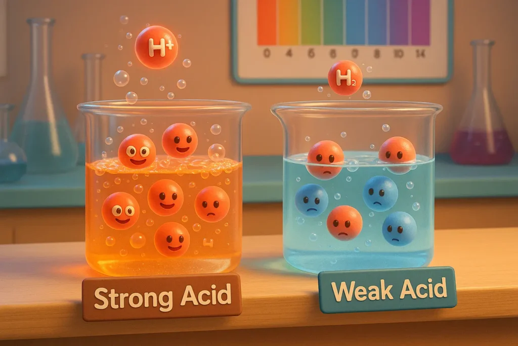 The difference between strong and weak acids is fundamental in chemistry, industry, and biological systems around the world. Both types release hydrogen ions in solution, but their behaviour is quite different. Strong acids ionise completely, while weak acids only have 1-5% ionisation under normal conditions.